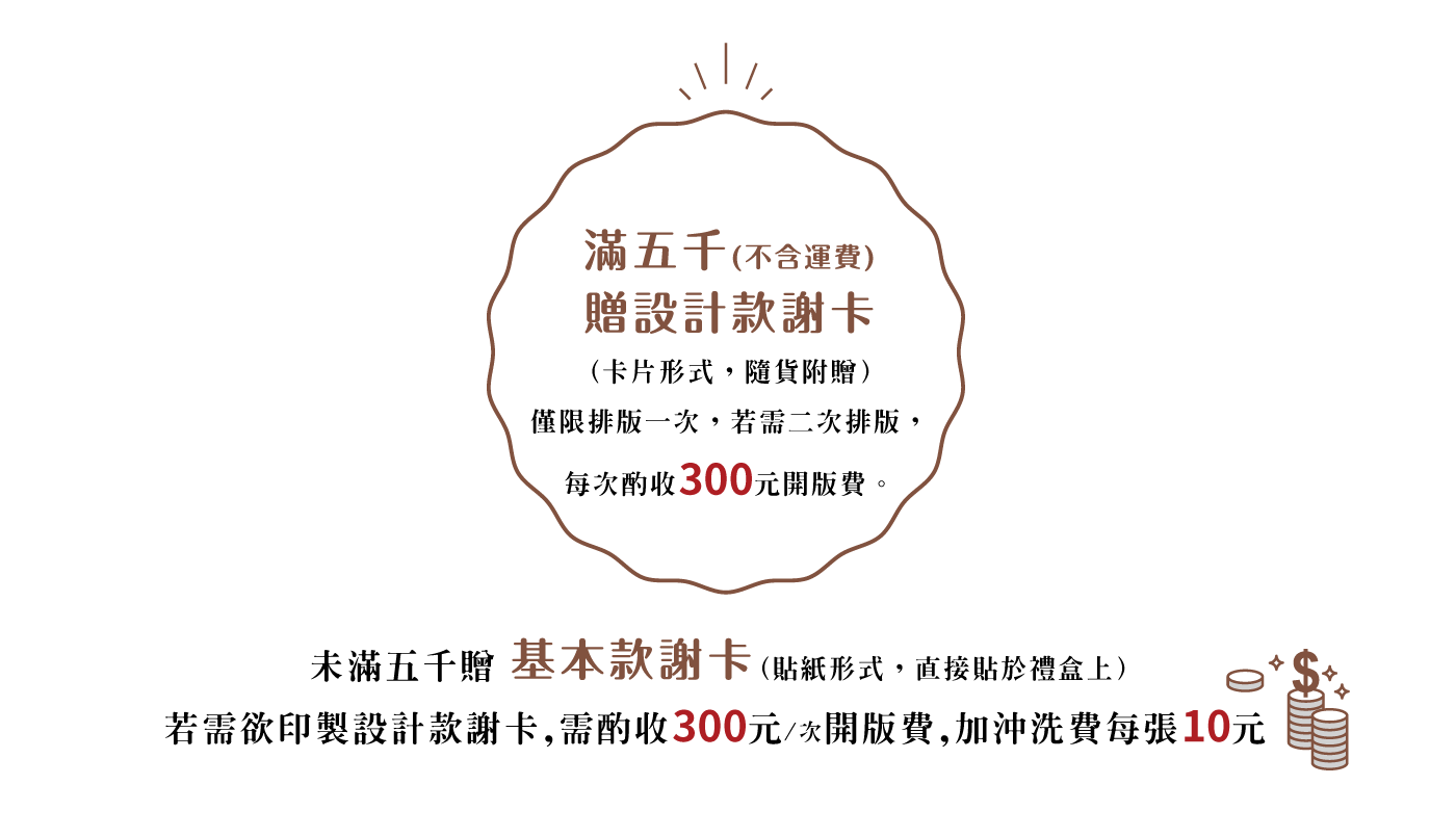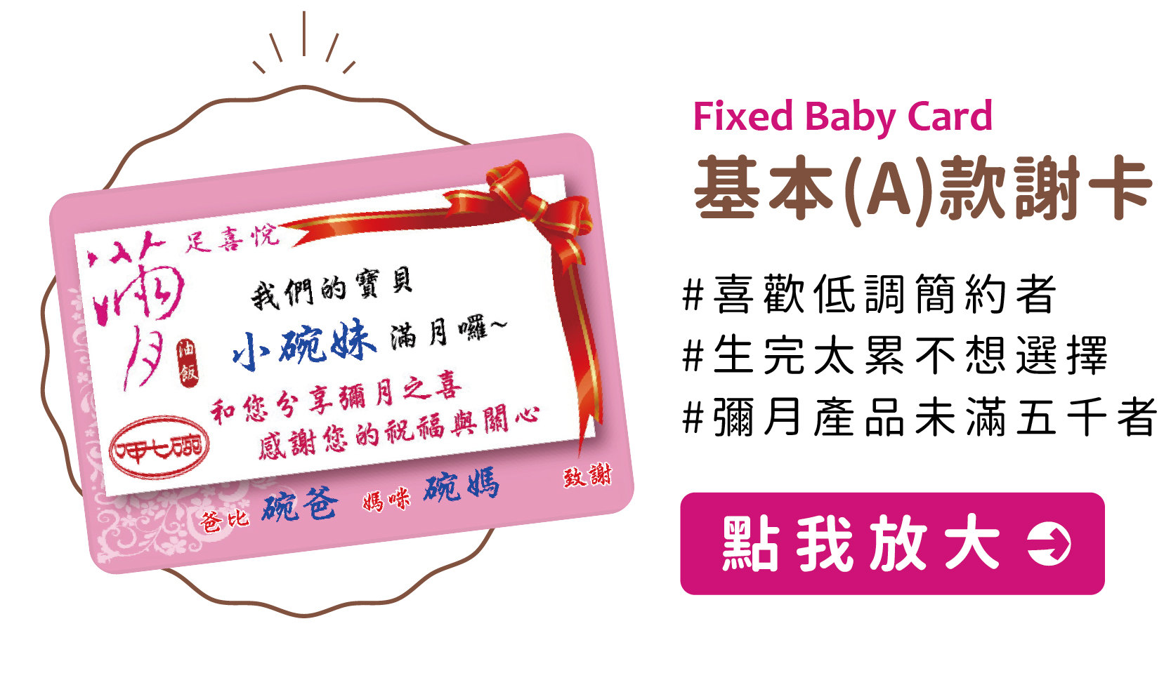 ❶ 如需製作彌月謝卡,請於訂購時告知彌月專員